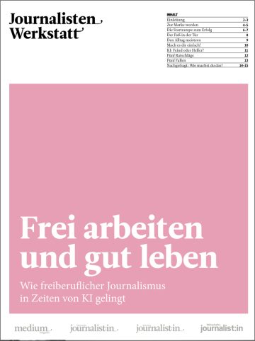 Um Praxis geht es auch in der neuen „Journalisten-Werkstatt“ von Marius Elfering Frei arbeiten und gut leben. Die „Werkstatt“ liegt im „medium magazin“-Abonnement gratis bei. Einzeln ist sie zudem im Shop erhältlich.