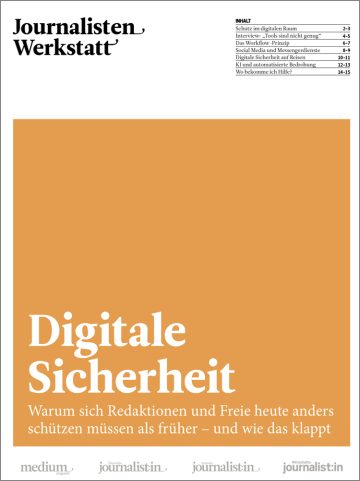 Um Praxis geht es auch in der neuen „Journalisten-Werkstatt“ von Florian Sturm Digitale Sicherheit. Die „Werkstatt“ liegt im „medium magazin“-Abonnement gratis bei. Einzeln ist sie zudem im Shop erhältlich.